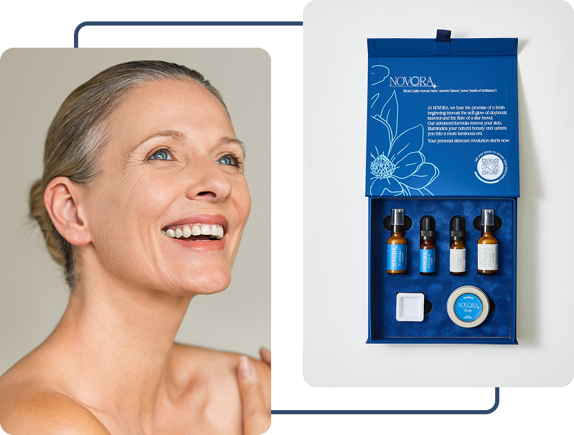 As we age, the skin can appear thinner and less supple, with visible fine lines and uneven texture becoming more noticeable. NOVORA’s advanced formula helps address these visible signs of aging, supporting smoother, firmer, and more radiant-looking skin.