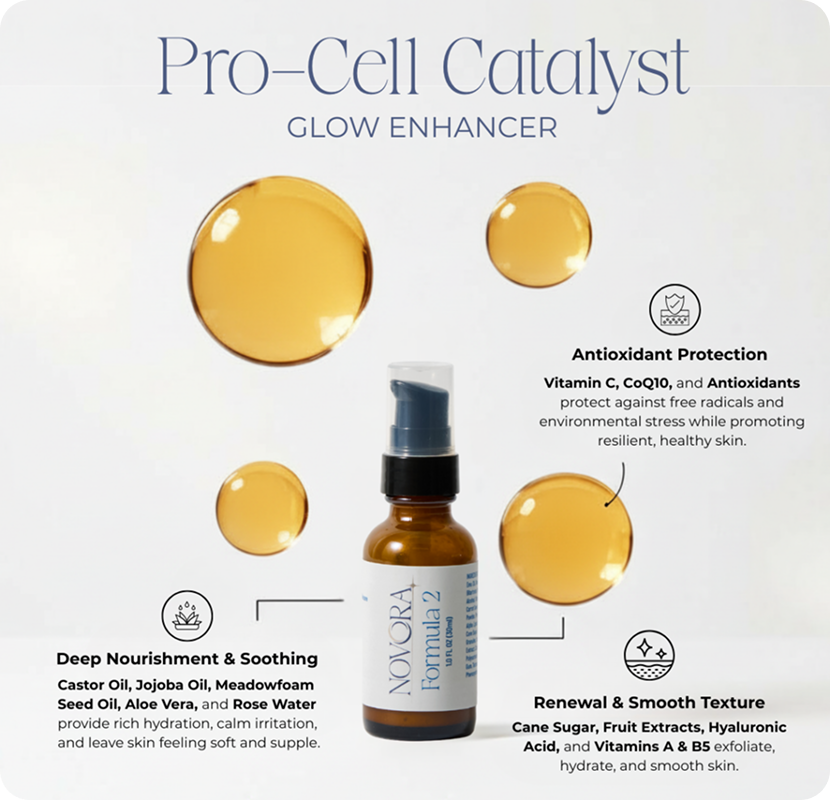 Each ingredient in the NOVORA Advanced Skin Renewal System was chosen for its proven cosmetic performance. Together, they help improve the appearance of firmness, hydration, and radiance — for skin that looks smoother, healthier, and more luminous over time.